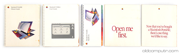 These are the manuals that came with the computer: Macintosh Portable Owner’s Guide, Macintosh Utilities User’s Guide, Macintosh Portable Handbook, and a couple of leaflets that contain welcome and getting started floppy disks.